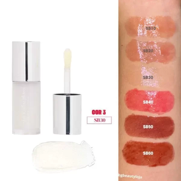 Su fórmula suave y no pegajosa promueve un acabado uniforme, dejando los labios suaves. Contiene micropartículas reflectantes que garantizan un efecto luminoso y radiante con un aspecto impecable.
